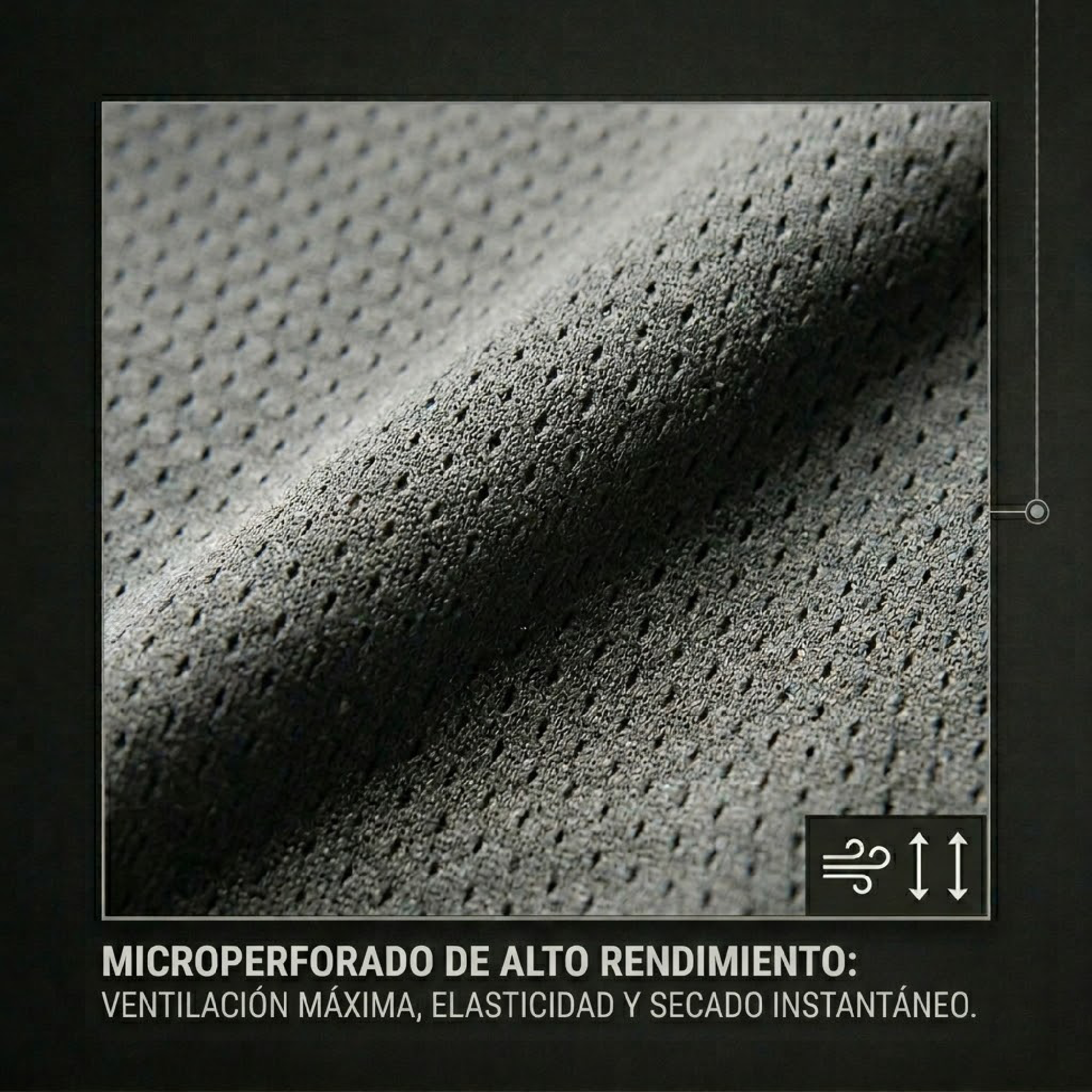 Tejido Cool Dry microperforada: favorece la ventilación, absorbe la transpiración y mantiene la piel seca.